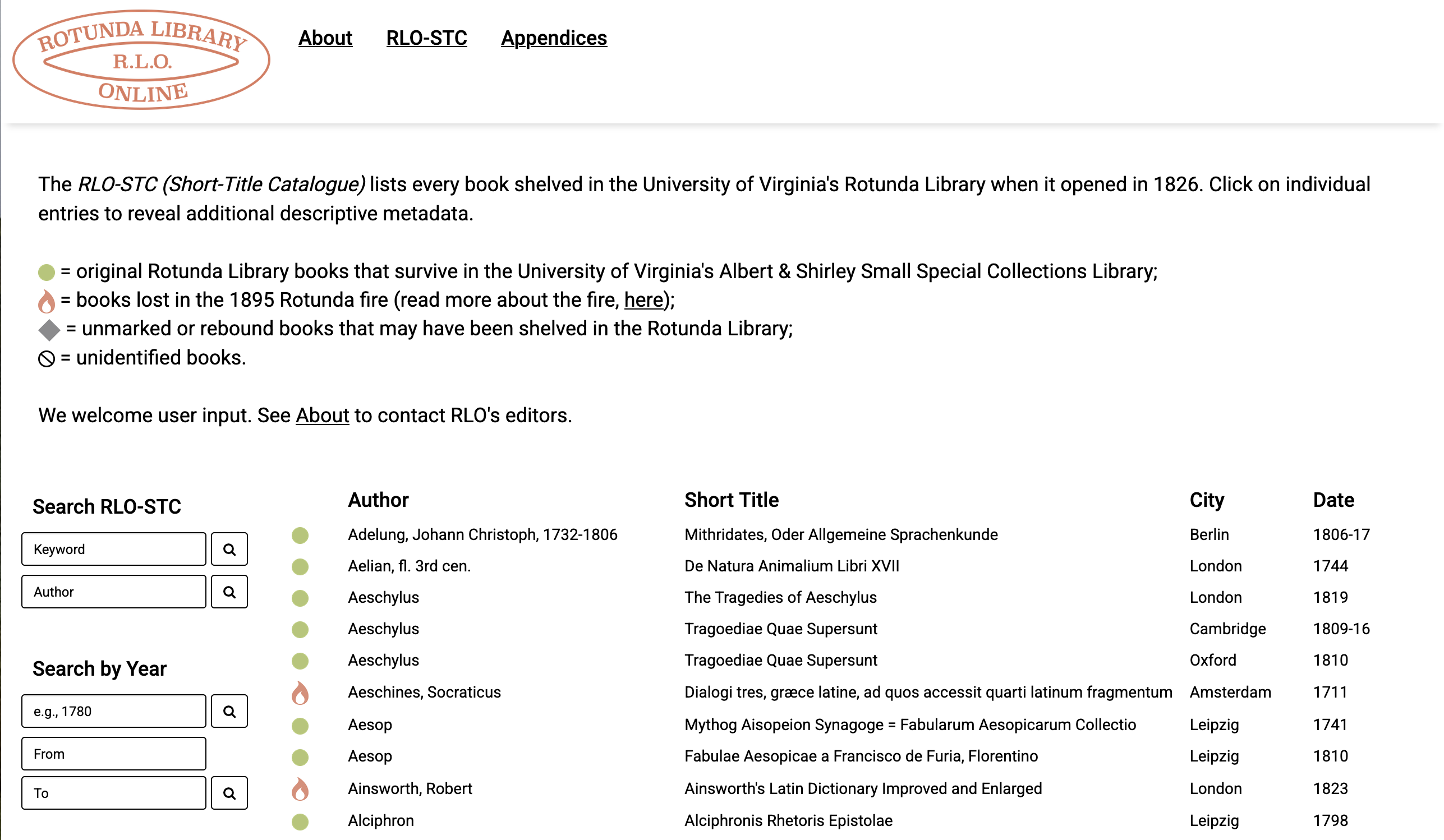 Together with Neal D. Curtis and Samuel V. Lemley, I co-edit the Rotunda Library Online, an open-access online database of every book shelved in the University of Virginia’s Rotunda Library when it opened in 1826. Rotunda Planetarium, an accompanying co-curated multimedia project, appeared in the Rotunda dome room November 2019 through February 2020. Comprising a digital light installation, exhibit, and public programming, this project revisited proposed but abandoned nineteenth-century plans to turn the Rotunda building into what would have been the first planetarium in the United States, using this history as an occasion to reflect on the building’s entwined legacies of slavery, library history, and scientific education.